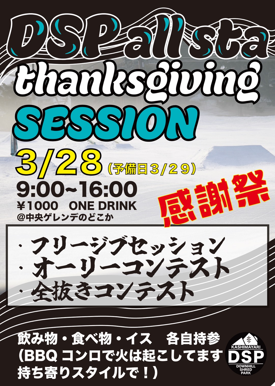 パークスタッフより皆様への感謝の気持ちを込めて、スキー場営業終了後の残雪セッションを開催します!